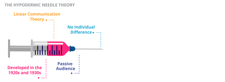 Het is dan ook een achterhaalde theorie, maar nog steeds interessant! De HNT werd bedacht rond de jaren 30 als deel van de theorieën rondom het gedrag van de mens. De media kwam omhoog en de maakbaarheid van de samenleving werd bekeken. Begrippen als ‘ontvanger’ en ‘zender’ stonden in een ander contrast dan tegenwoordig. Een andere benaming voor deze theorie was ook wel ‘The Magic Bullet’.