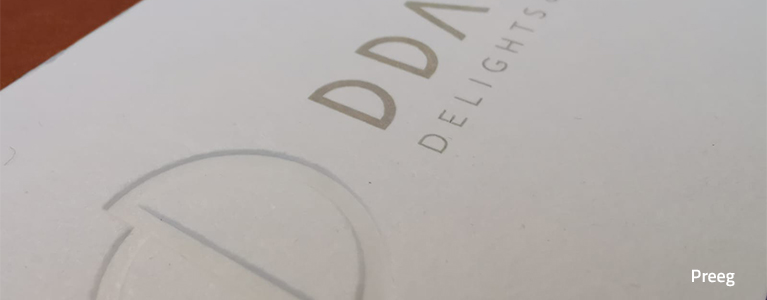Deze techniek zorgt ervoor dat er reliëf/hoogteverschillen in het papier komt. Een preeg is geschikt voor letters of mooie volvlakken.